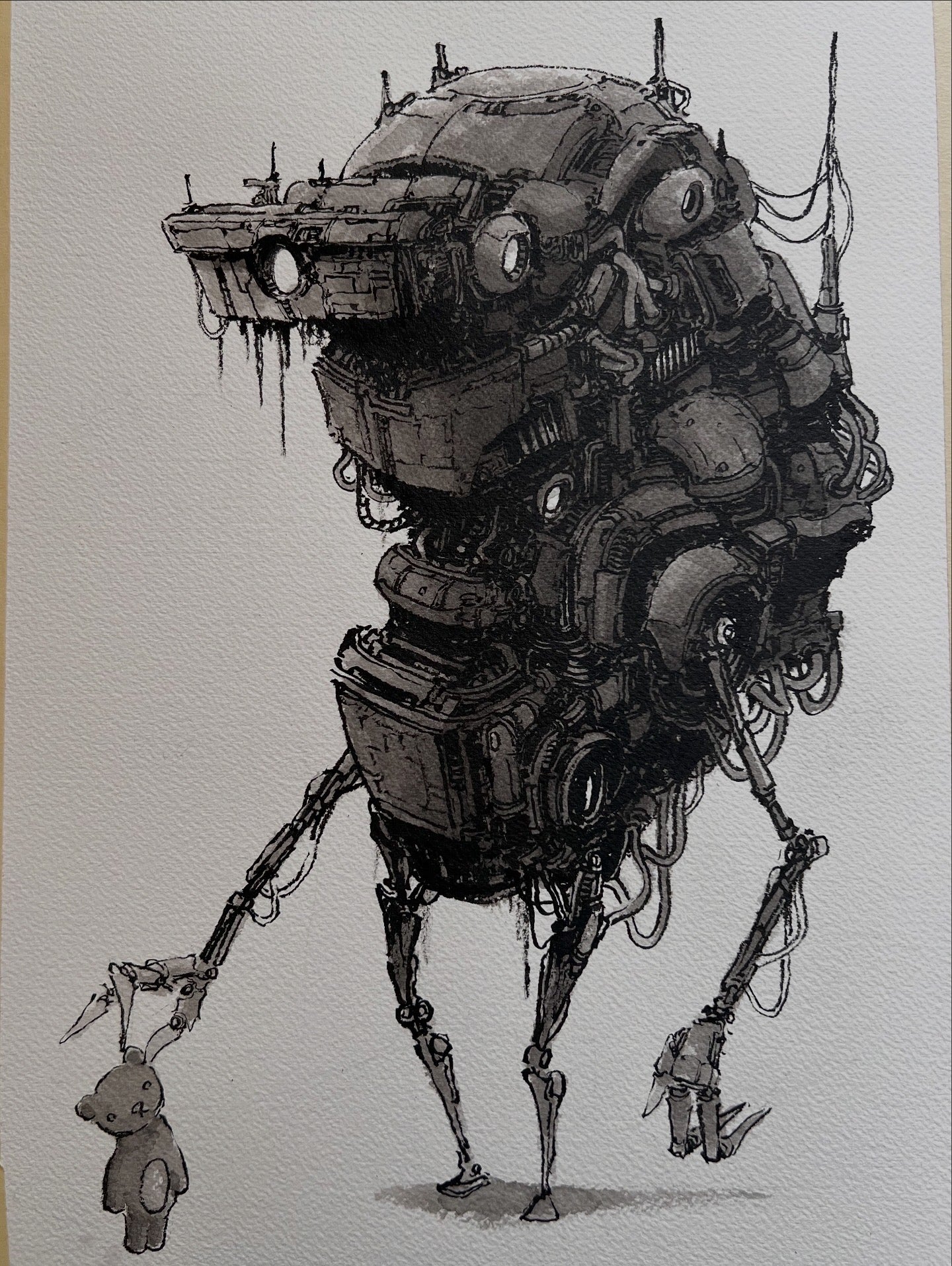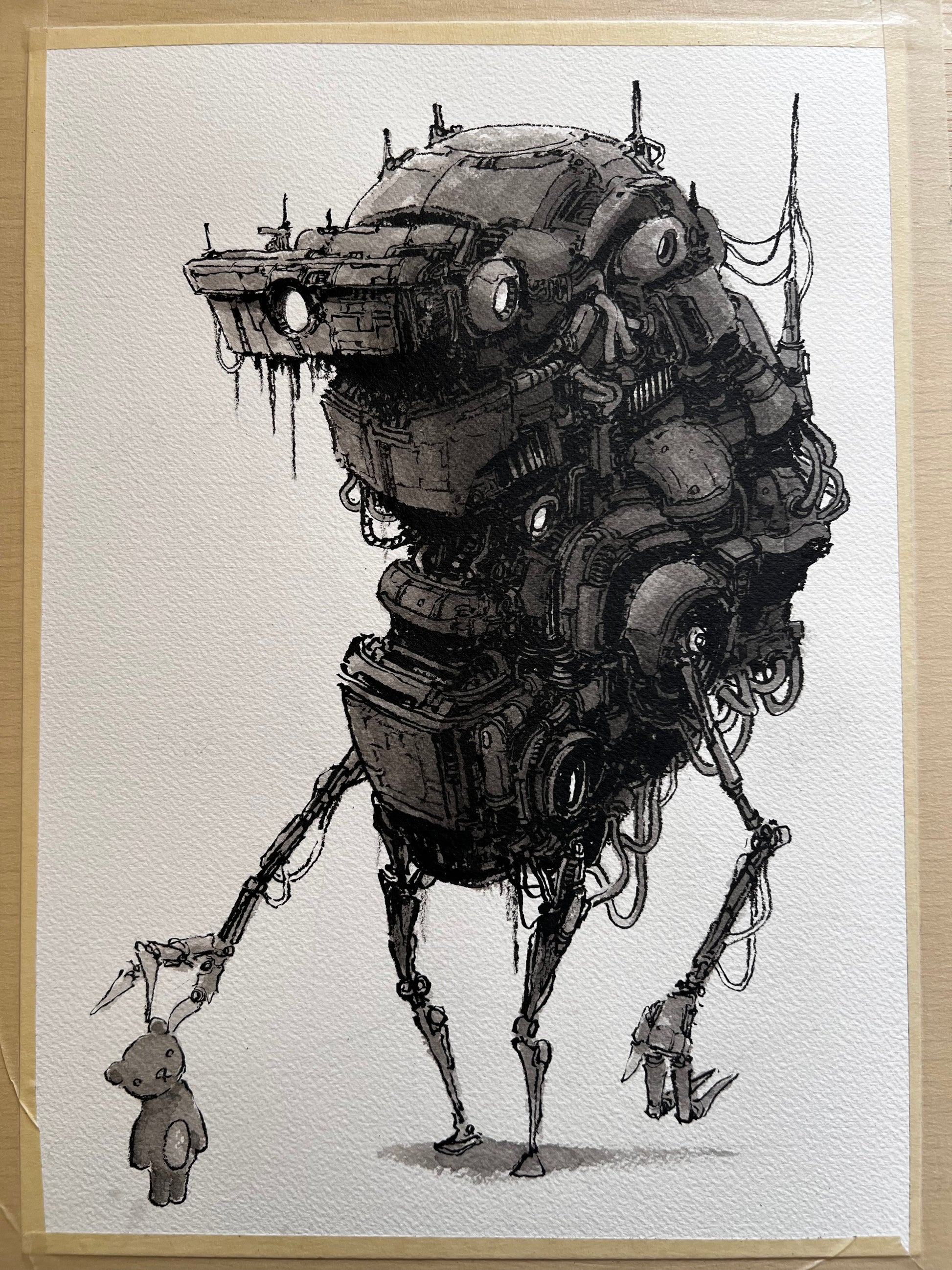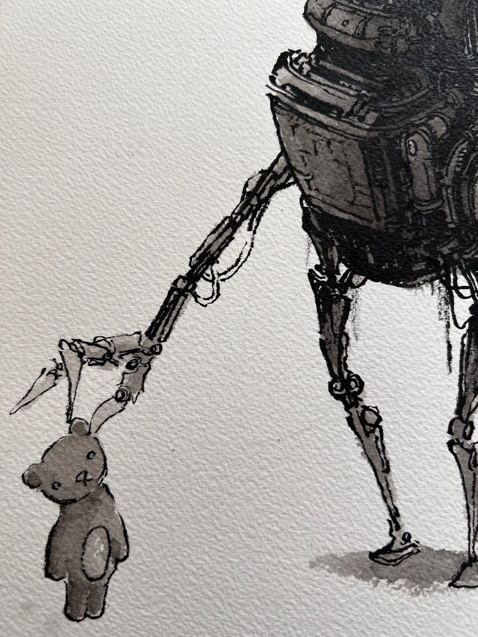 Her name is Luna. She's a TAB Model. They are lifters. You see a lot of them lifting things. They rummage around exo planets and offworld settlements, usually lifting things. They work in factories or large storage units. This one in particular, fell in love with rocks. She felt the need to escape her day job, and started picking up organic materials. She fell for the gritty textures and asymmetry. She got tired of boxes. She’s a cool gal.