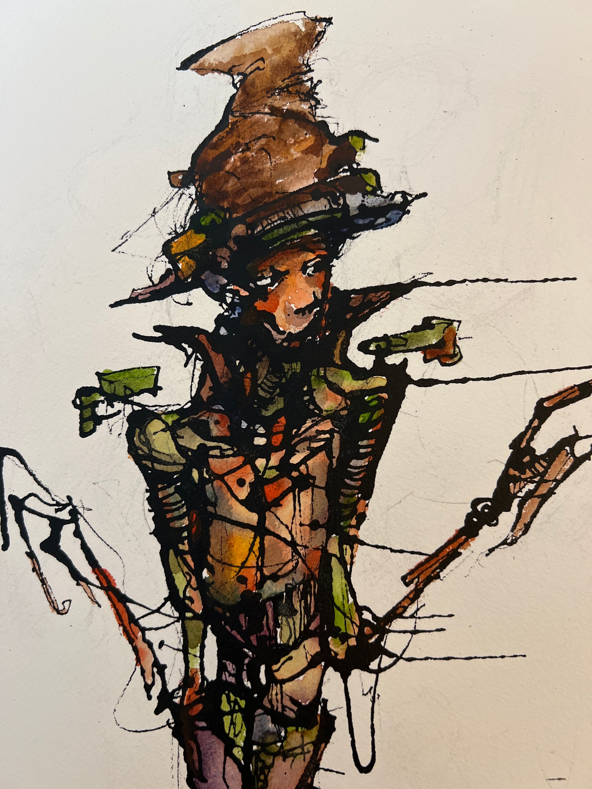 My first concept for the mad hatter. I’ll be making another one because I like where it’s going, but this was my first try. We all know this character. This was done with an ink dropper and watercolor.