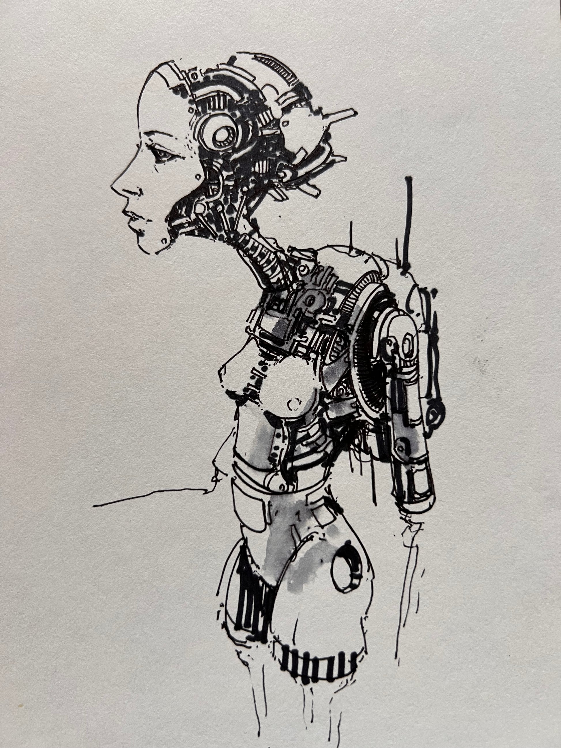 This is a page from my sketch book. A bit on the revealing side but I like her.