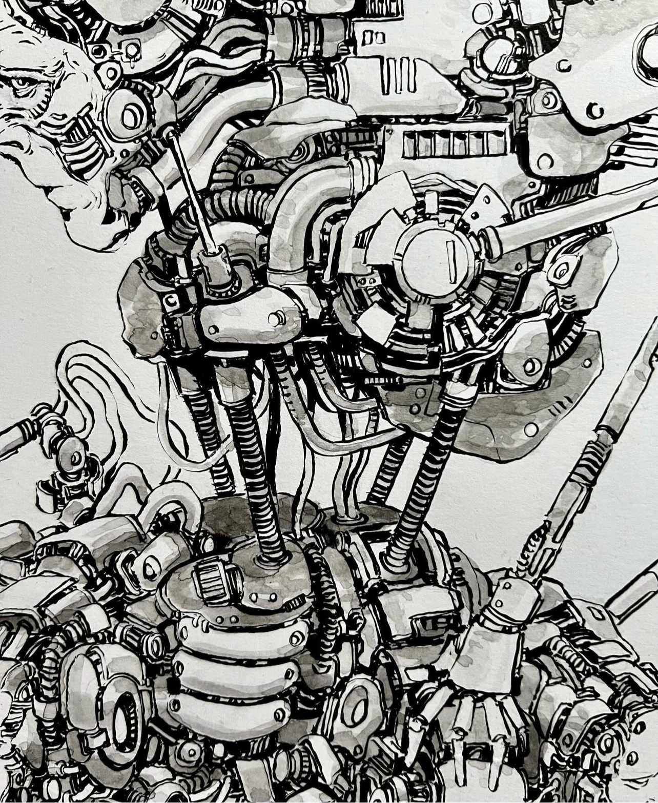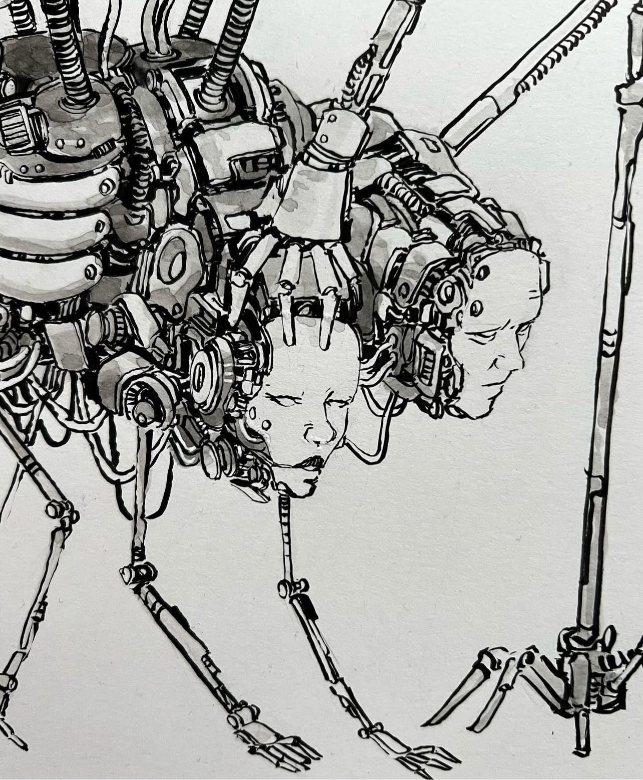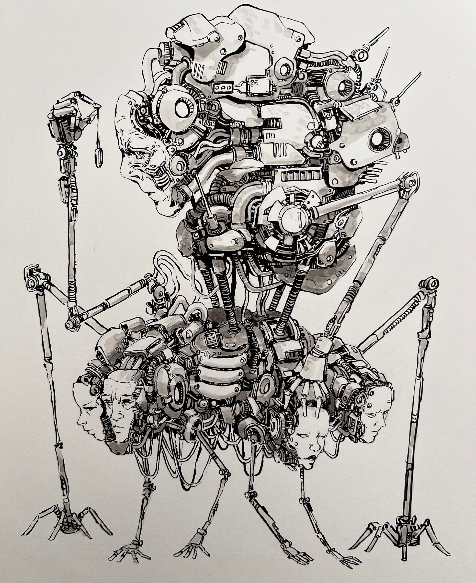 My first ever drawing on a large piece of paper. This was when I was in a rut. Couldn’t come up with much but decided to start fleshing out a story (I’m still working on it). These entities, when they speak, you hear everyone who has ever joined them. They go around searching for those who are beyond saving, dying or suffering. They offer these people a choice, either join them in eternal bliss or die. These entities see this as compassion for humanity. They basically strip you of your flesh and bones, take your face/skull/brain and build an area for you onto them. I'd do it.