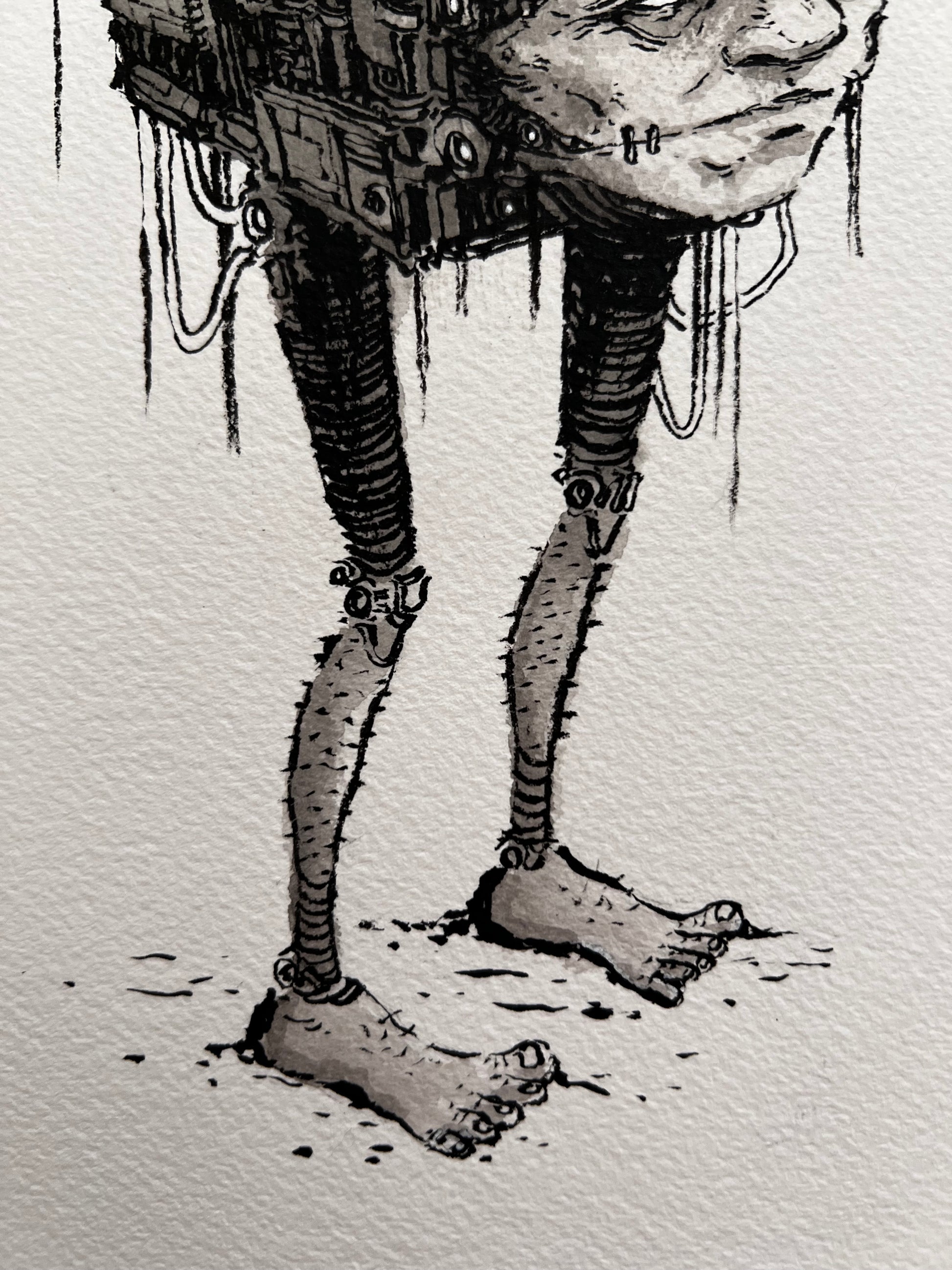 This drawing was my take on the Gonk Droid from Star Wars but in Dark Souls/Elden Ring. I did this for a YouTube video but also I wanted to challenge myself by taking something from one universe and trying to fit it into another. So I introduce a Gonk, an enslaved Power Unit. There are hundreds of them running around somewhere I’m sure. They all have two right feet!