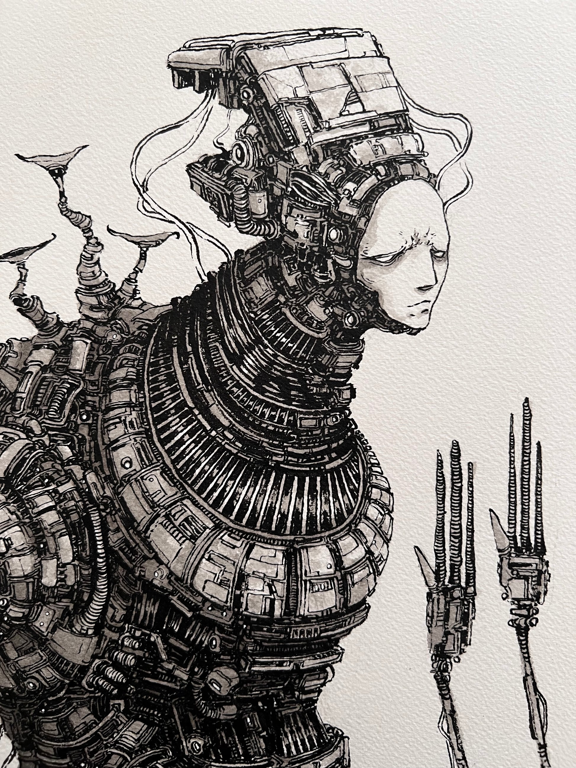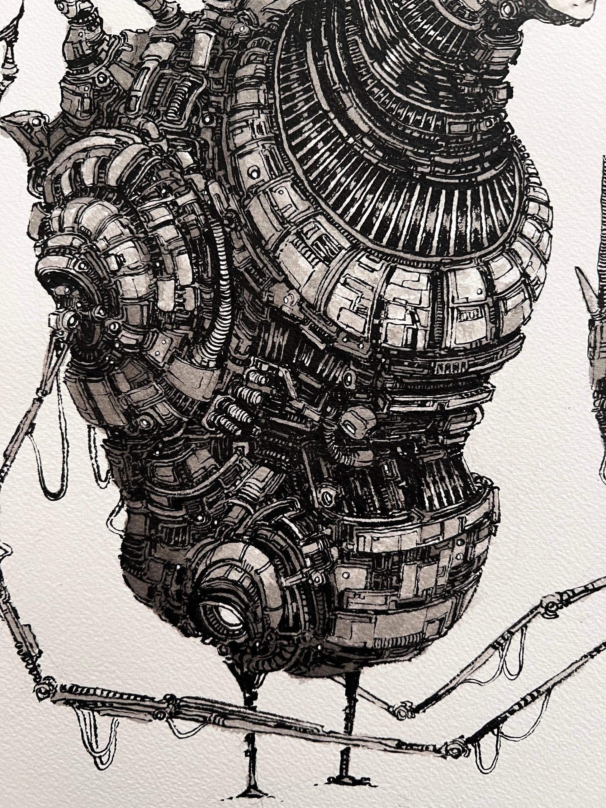 Her name is Luna. She's a TAB Model. They are lifters. You see a lot of them lifting things. They rummage around exo planets and offworld settlements, usually lifting things. They work in factories or large storage units. This one in particular, fell in love with rocks. She felt the need to escape her day job, and started picking up organic materials. She fell for the gritty textures and asymmetry. She got tired of boxes. She’s a cool gal.